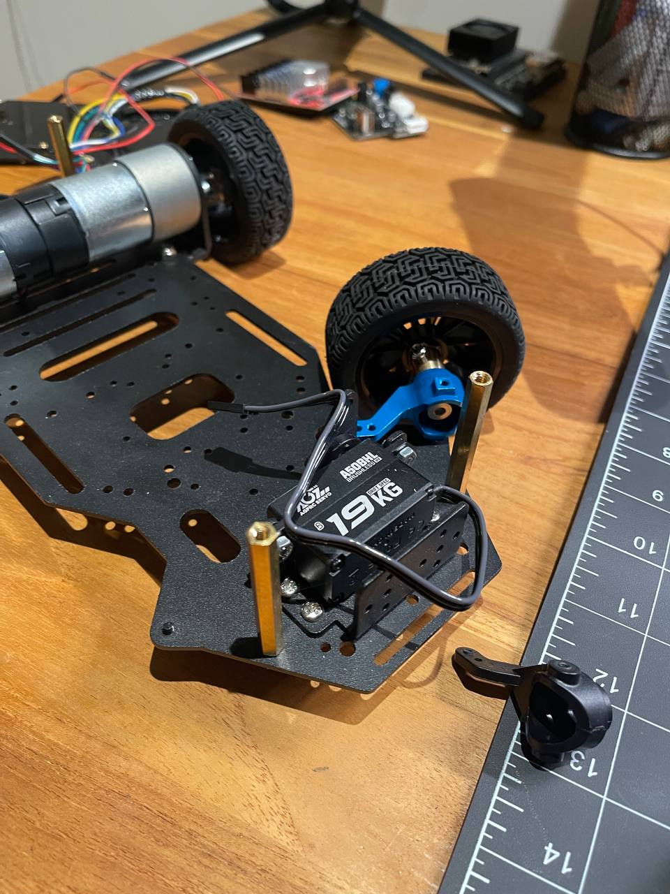 I was planning to run the steering servo today and try to turn it with the Raspberry Pi, but Amazon didn't deliver the solder so I'll have to wait to do any soldering.