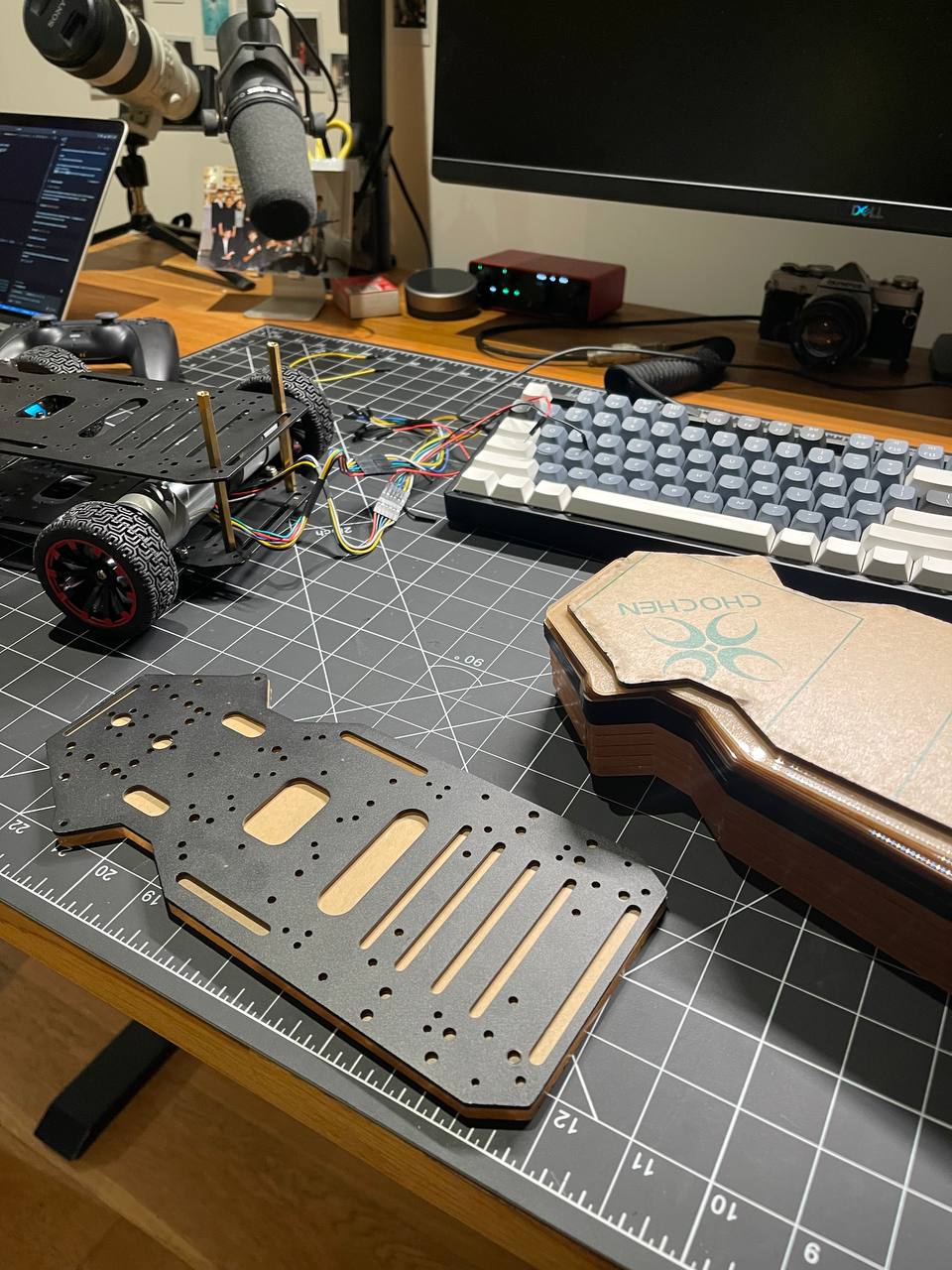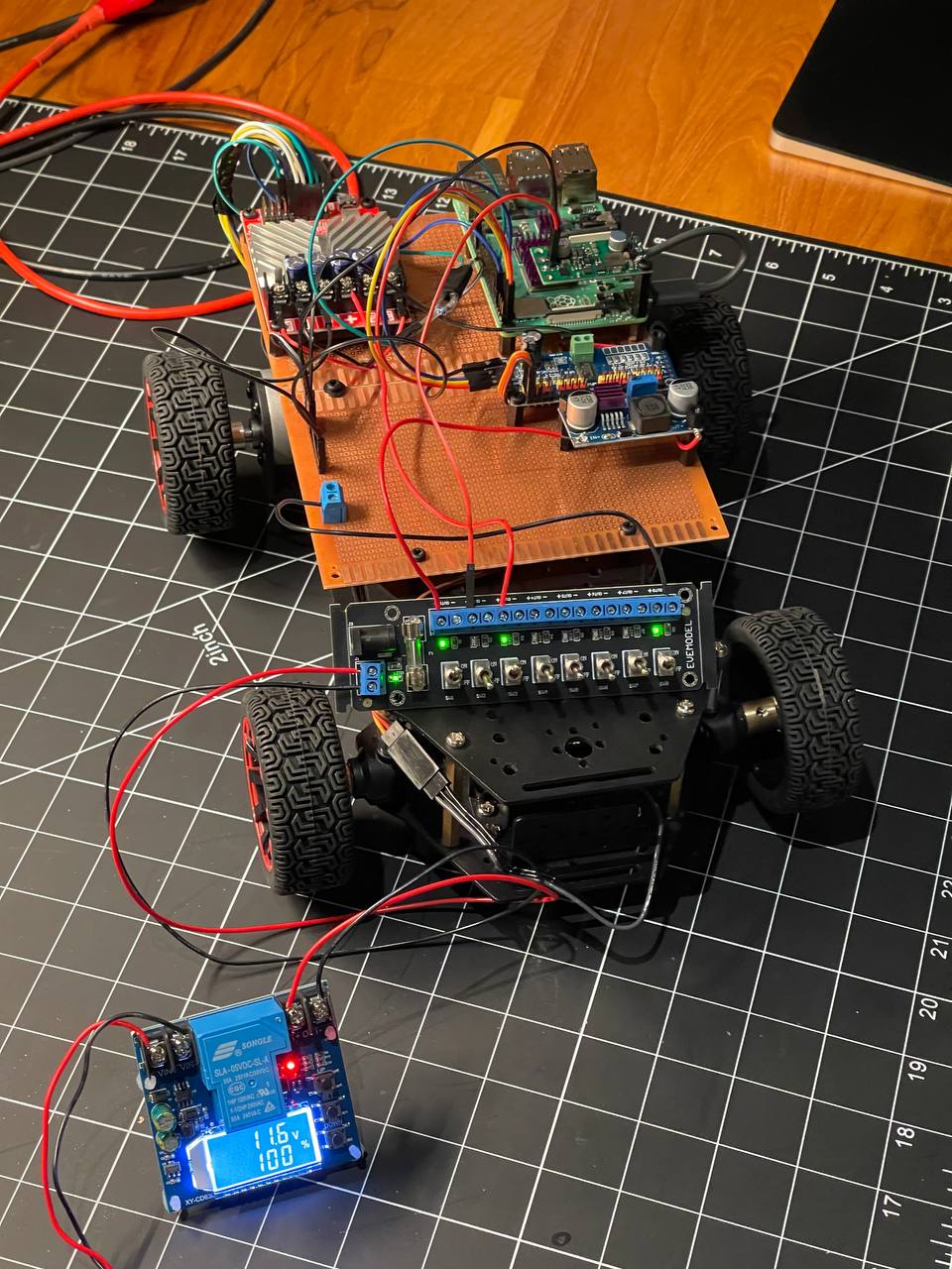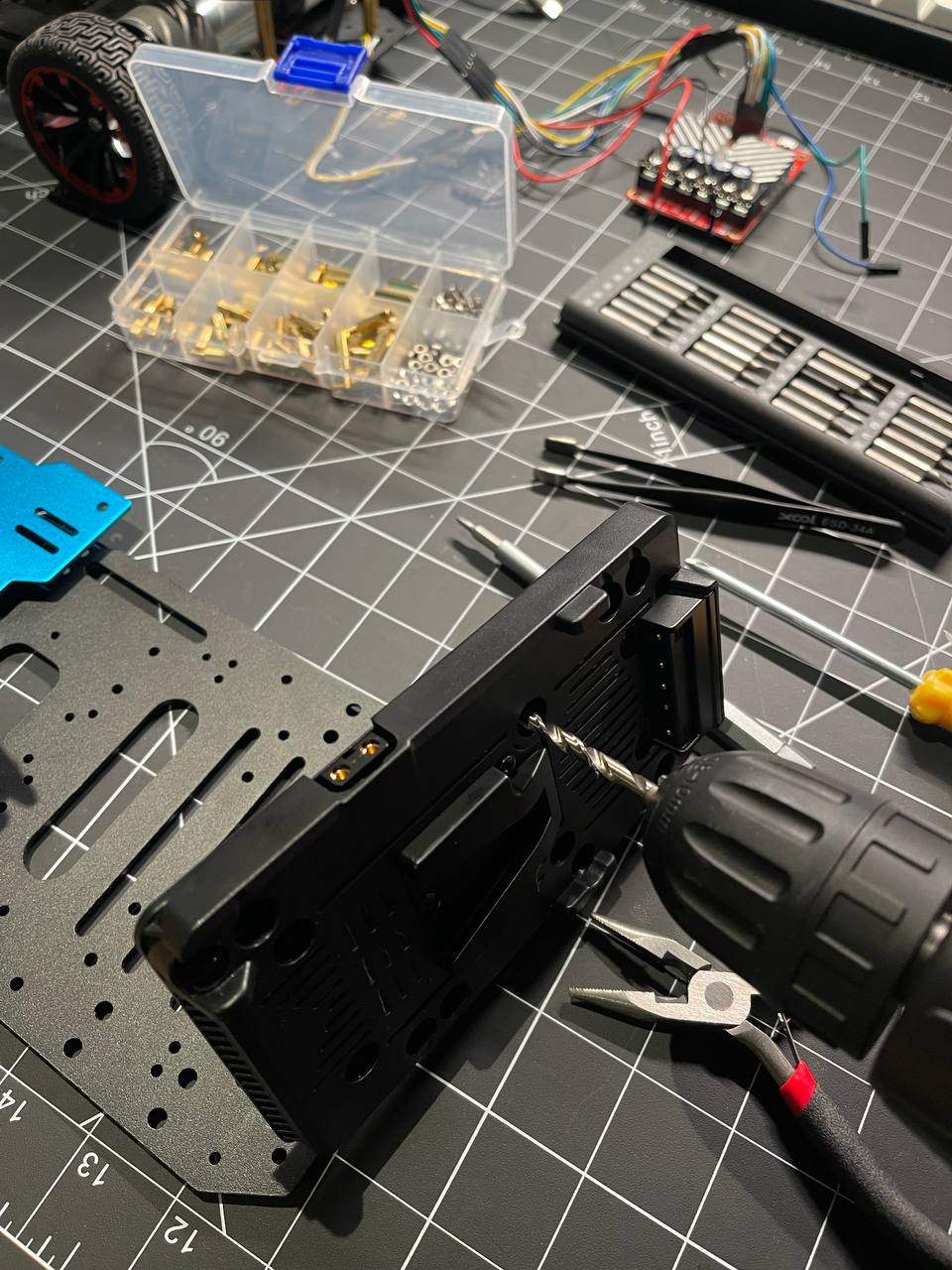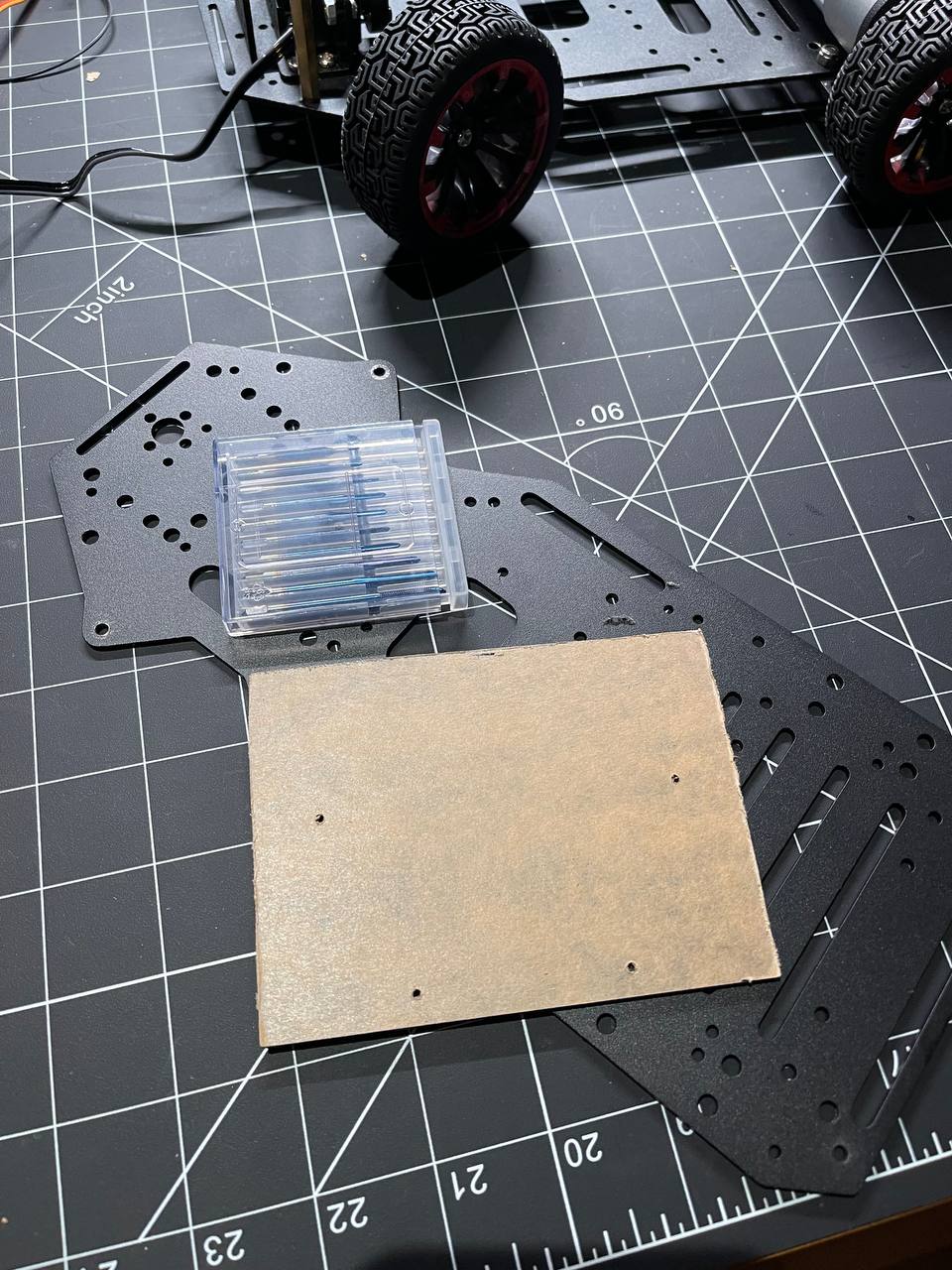 I need to mount the PCBs using vertical/horizontal mounts on an acrylic or some other plate that I can easily drill holes in and attach other components to. This way the robot chassis won't get drilled or damaged if I need to redo something.