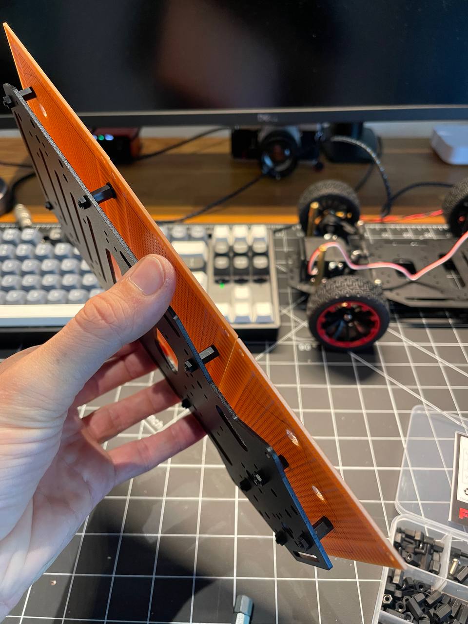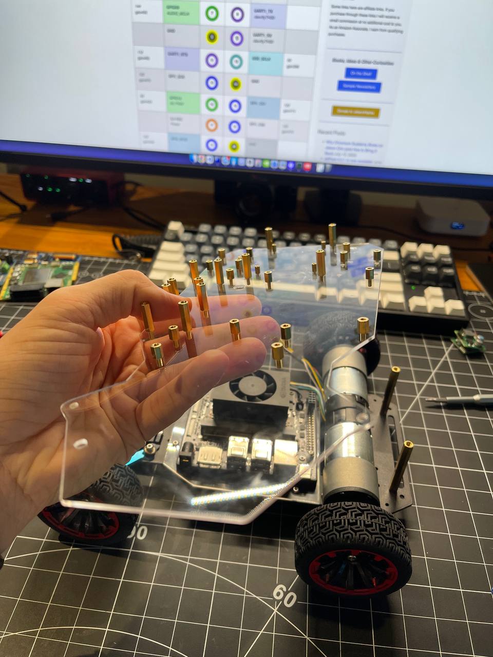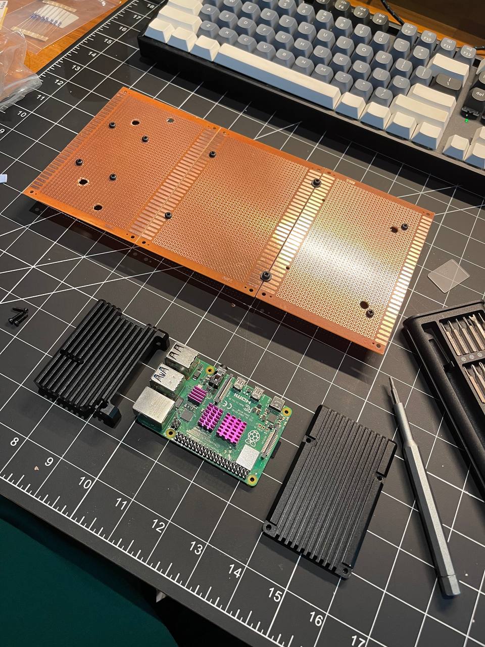 I'm thinking of buying a few acrylic sheets and cutting them to fit neatly with this plate so it's tidier and making a multilayer waffle and mounting components on both sides.