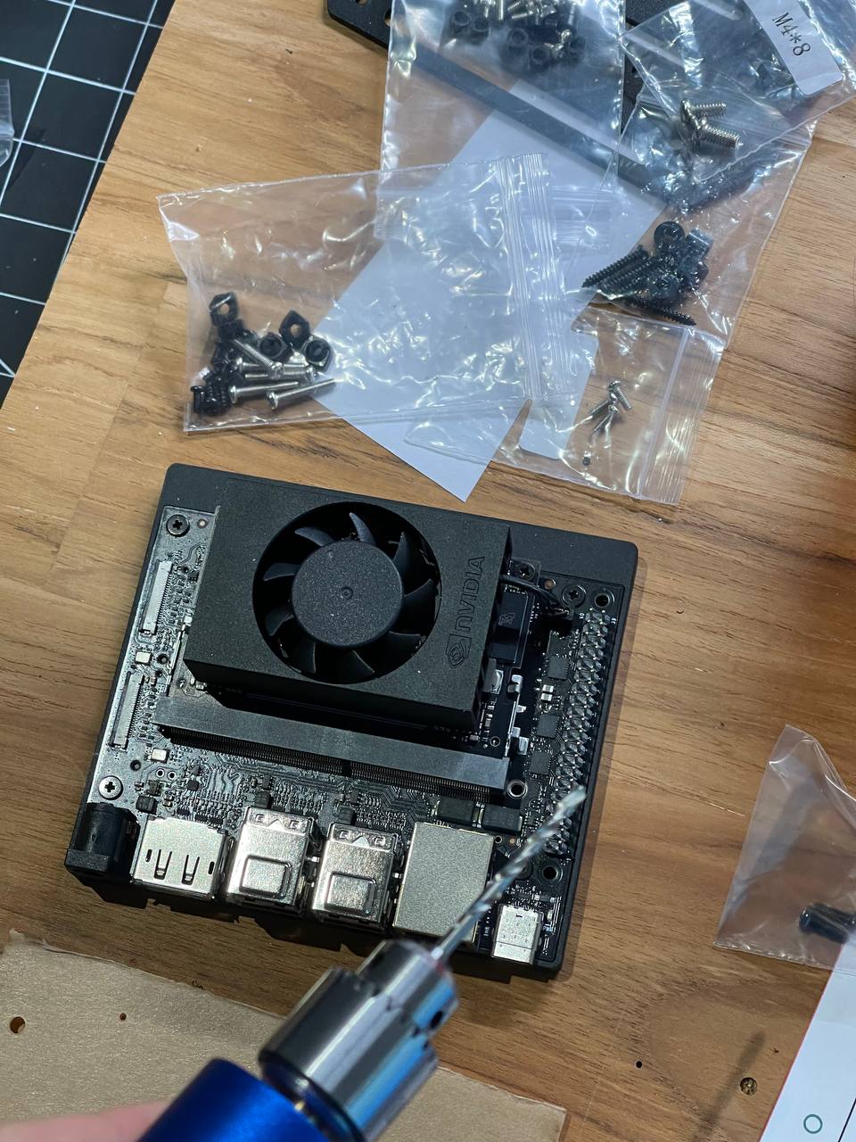 It's a bit trickier with the Jetson because it doesn't have holes on the dev board. I had to drill some holes myself, I hope I didn't touch anything important and it's still working.