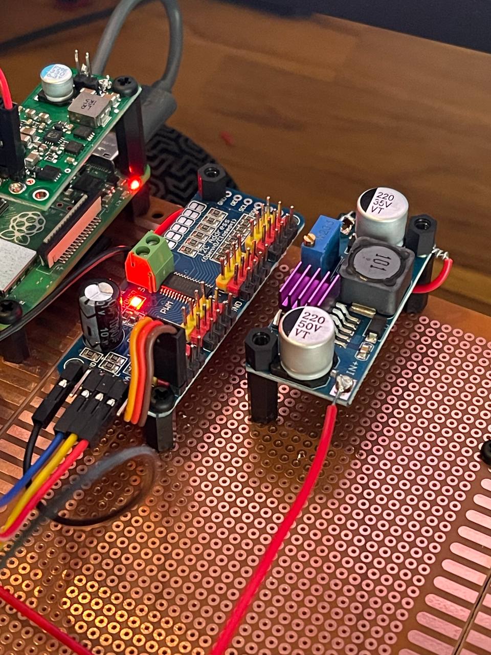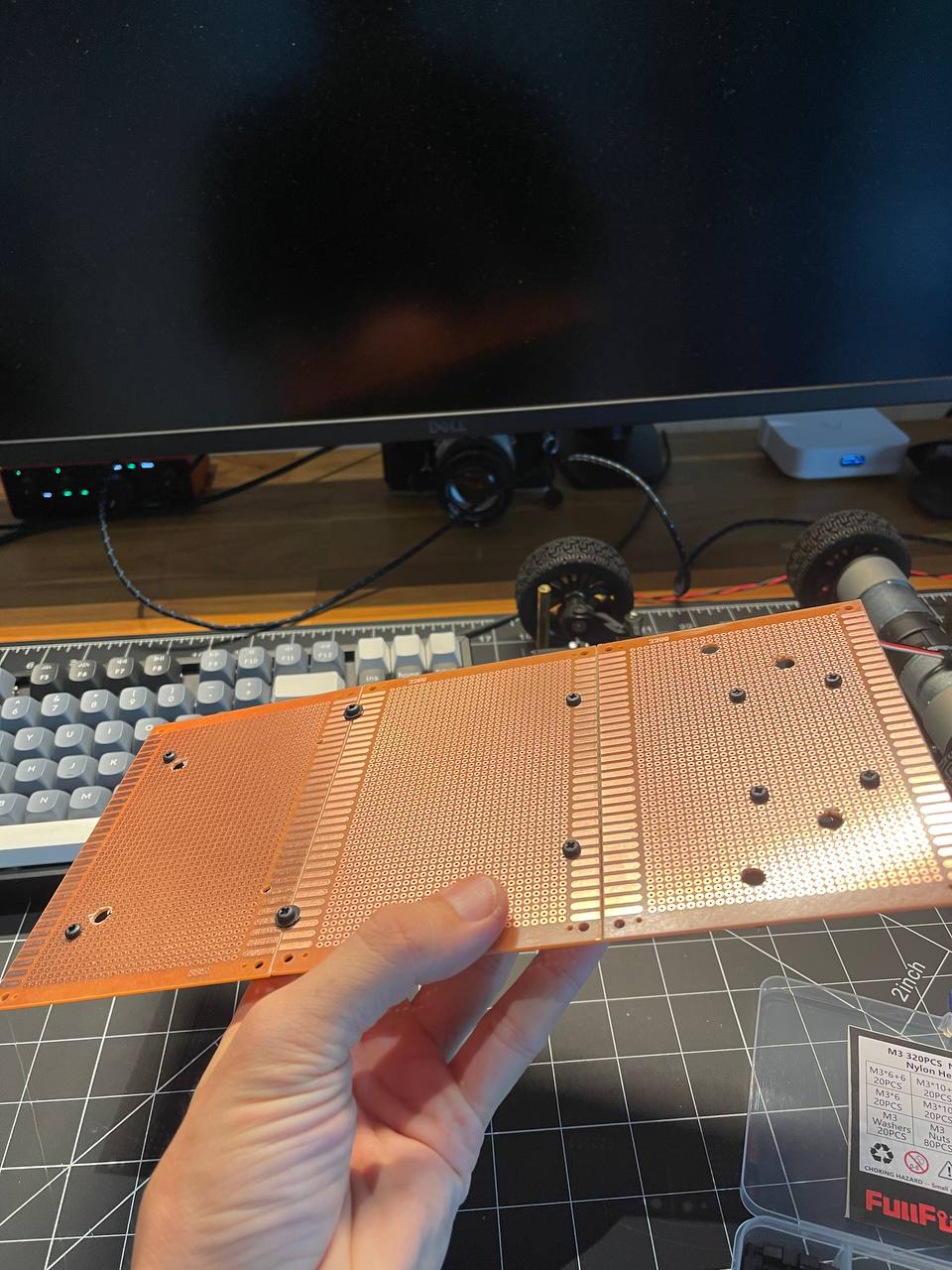 Today was actually pretty good progress. I bought 3 prototype boards and connected them together.