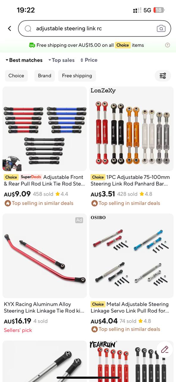 Itās a bit annoying that the steering knuckle and steering linkage are plastic and flimsy. Especially the little arm in the steering linkage. I think Iāve already stripped its threads while taking apart the steering mechanism a few times when I was tuning and changing the servo. Decided to check whatās on AliExpress and discovered a whole new world.