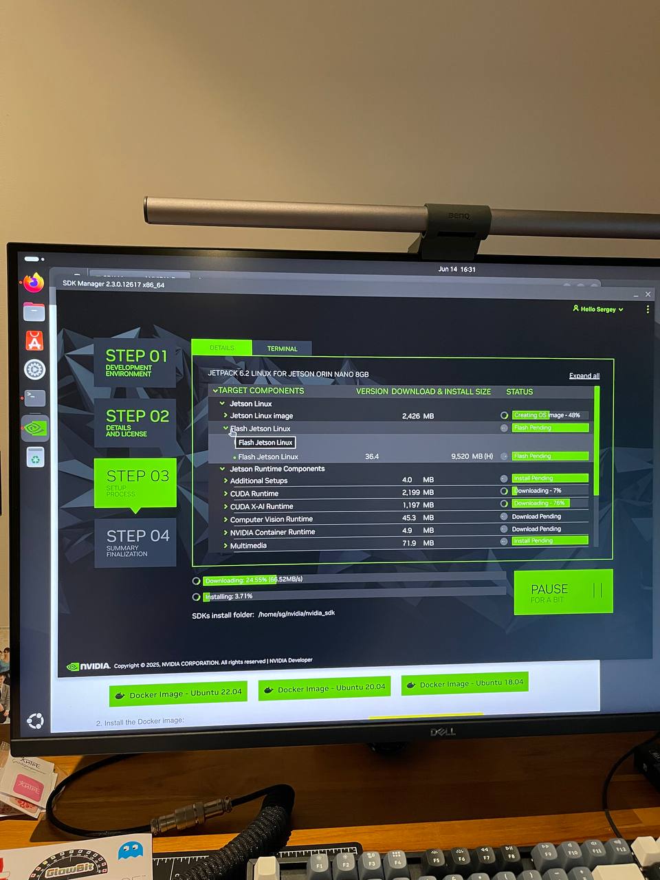 In the end I went back to the option with nvidia sdk manager