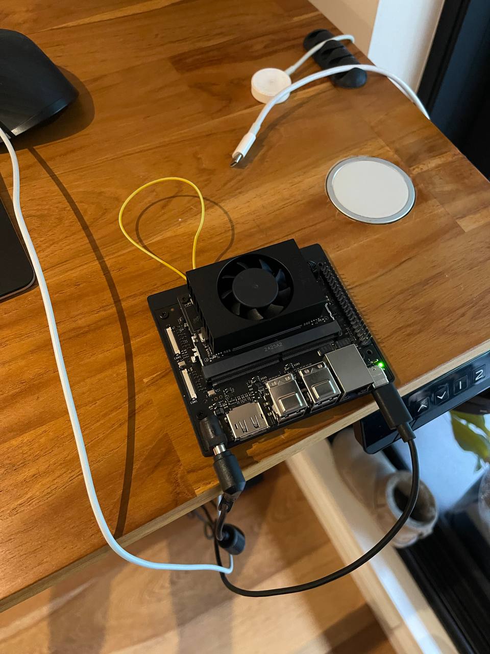 Here's Jetson in recovery mode during reflashing by the way. To enter this mode you need to short 2 contacts.