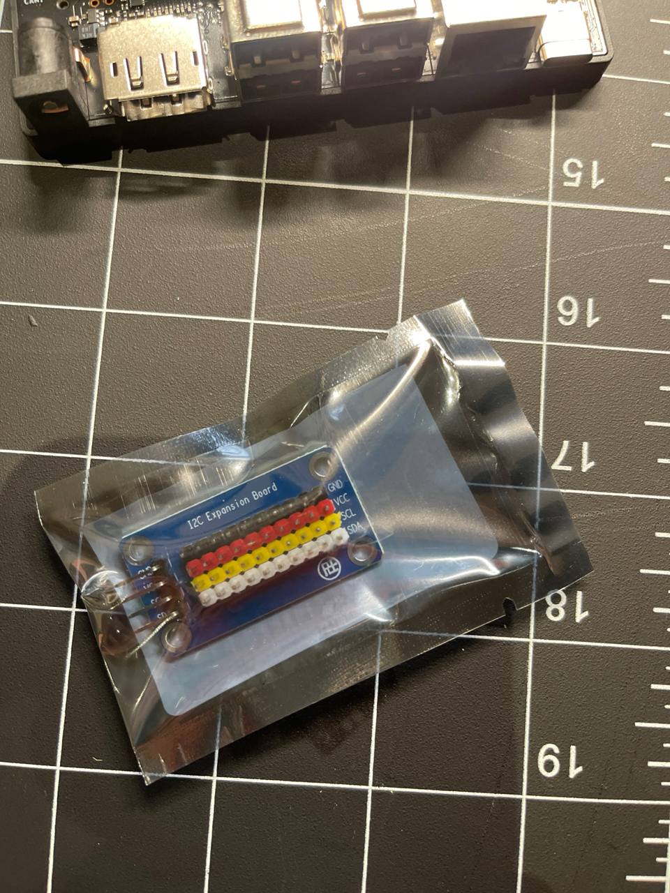At the same time, the steering servo is connected through PCA9685 and directly to the jetson pins. But I don't really want to solder a bunch of wires so I bought an i2c expansion board. It's convenient, I'll add more i2c too. Plus, the ground pin header turned out to be super handy for tying all the GNDs together on all the boards.