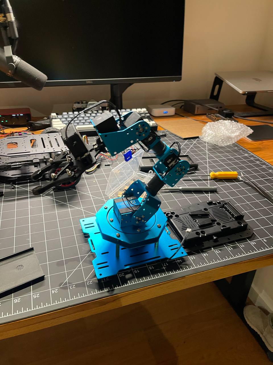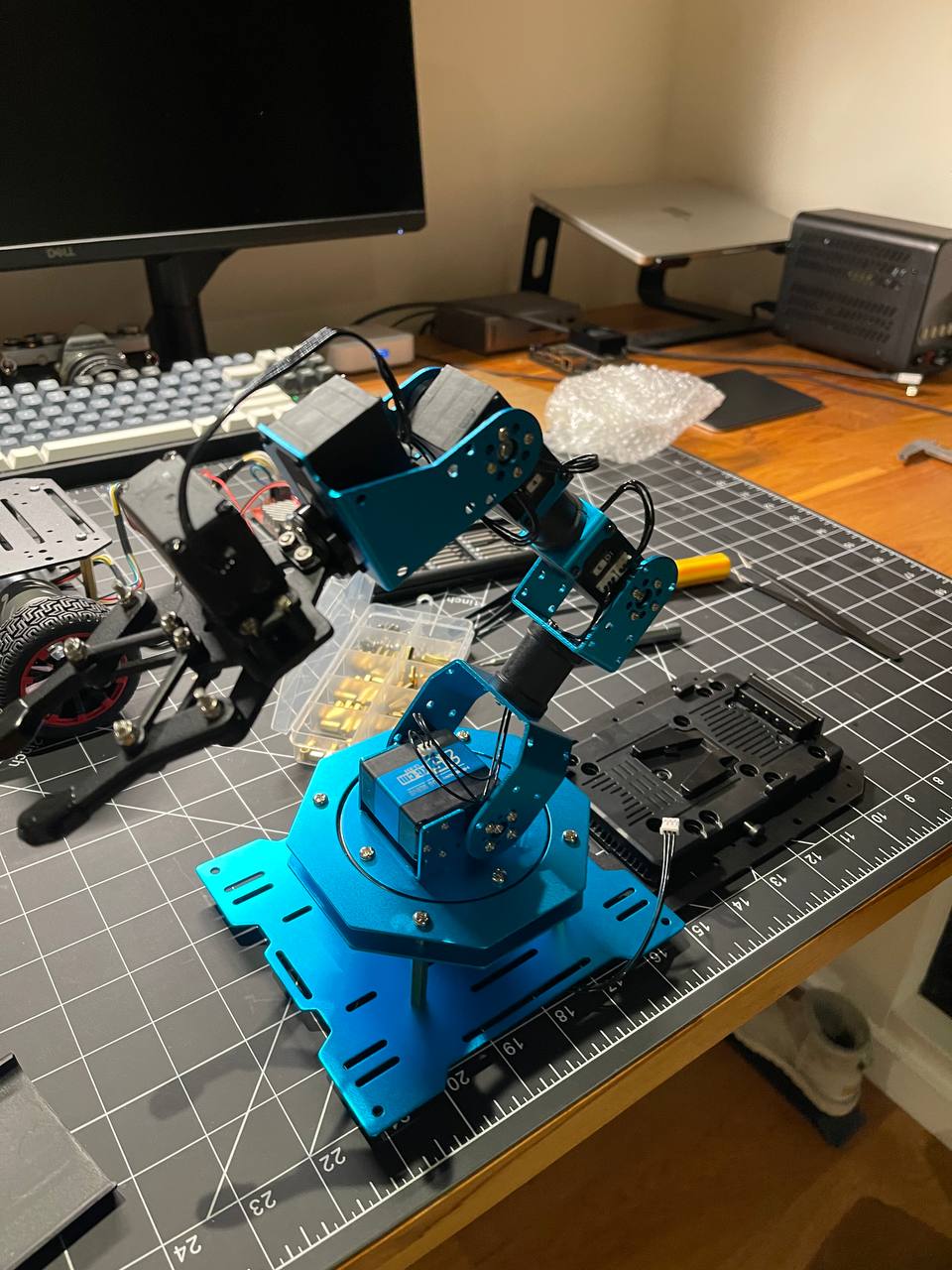 The whole robot assembled will be about 3.5kg. That's pretty hefty honestly.