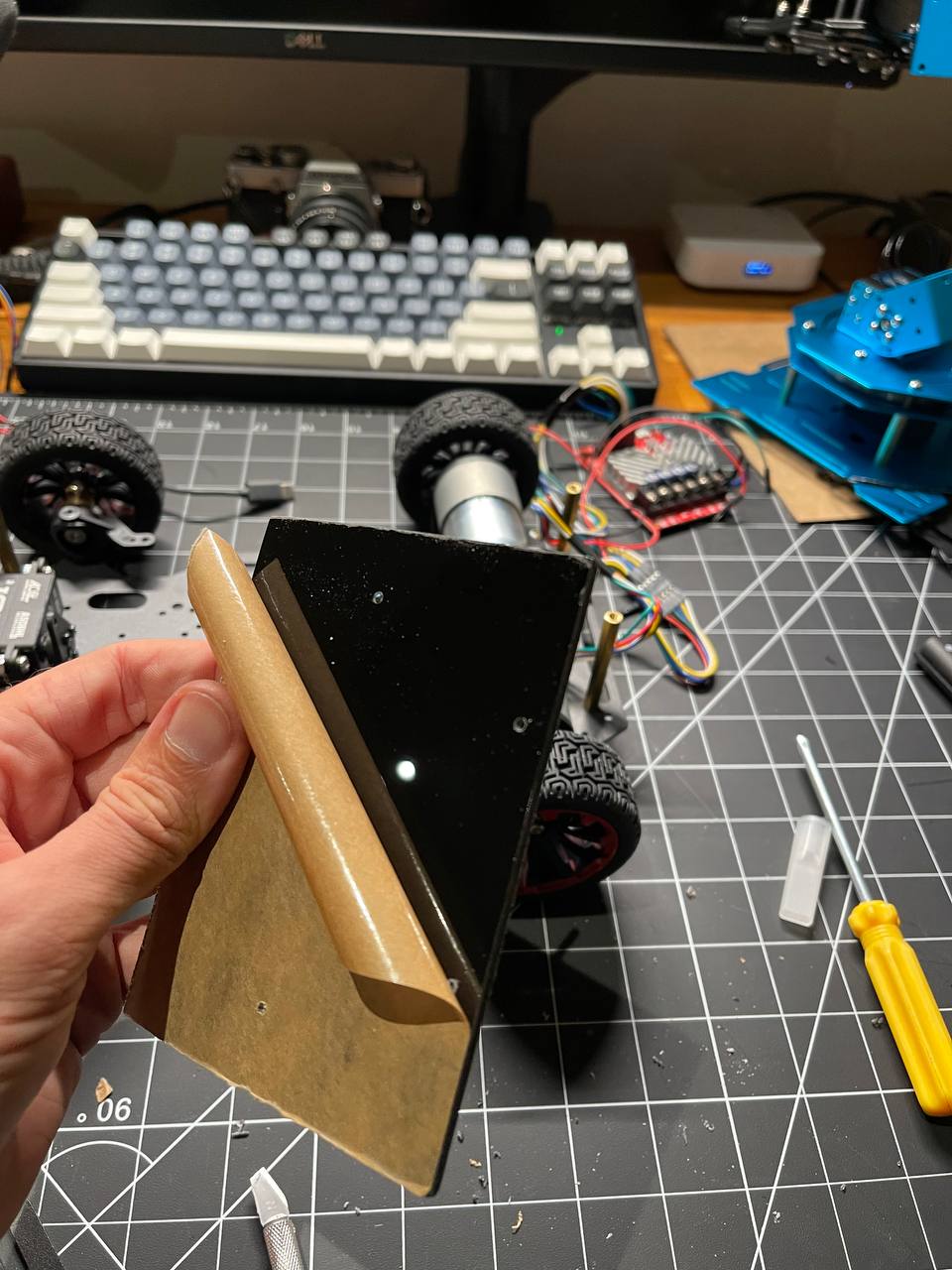 Put everything together but havenāt connected the wires yet. Wanted to see how it looks assembled. No arm for now, Iāll add it a bit later or maybe leave it for the next milestone.